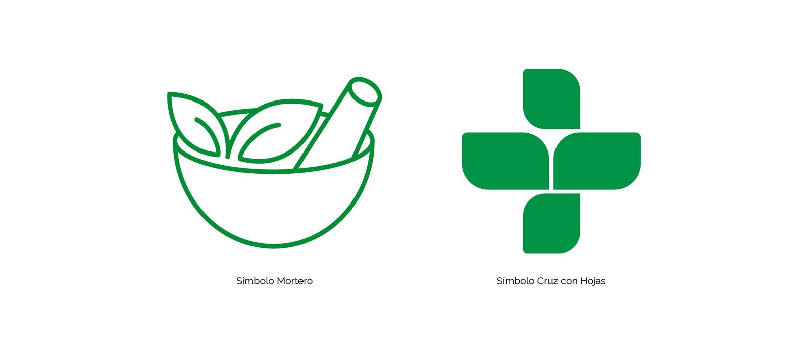 Este símbolo nace a partir del emblema de la cruz roja, que se utiliza en centros de salud, hospitales, etc., que la botica decidió adoptarlo y para diferenciarse cambió el color a verde que significa la esperanza, la naturaleza, o las plantas con las que elaboran sus fórmulas.